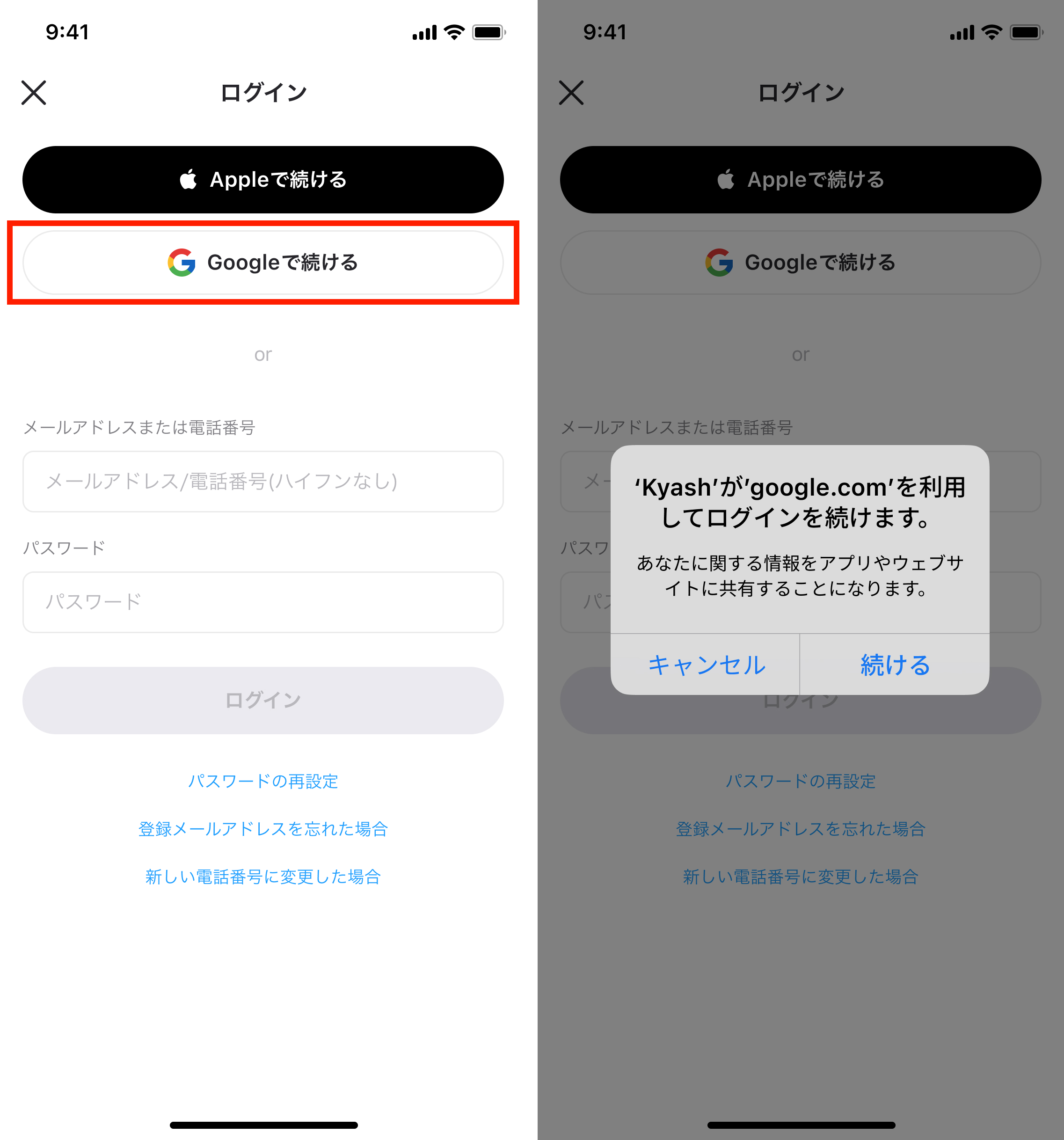 メールアドレスとパスワードでログインする以外に「Googleアカウントでログイン」が利用できます。