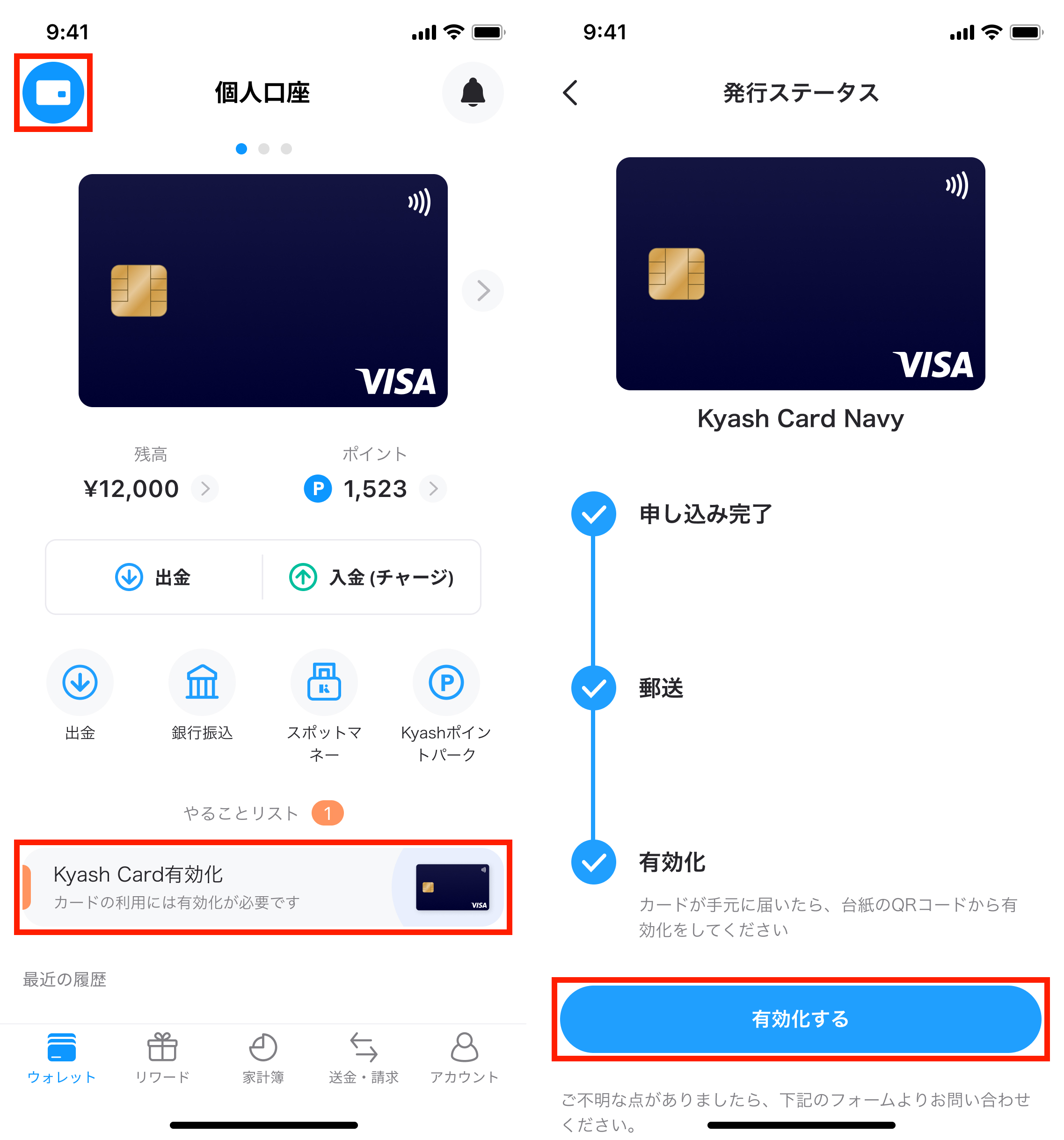 リアルカードの有効化方法
