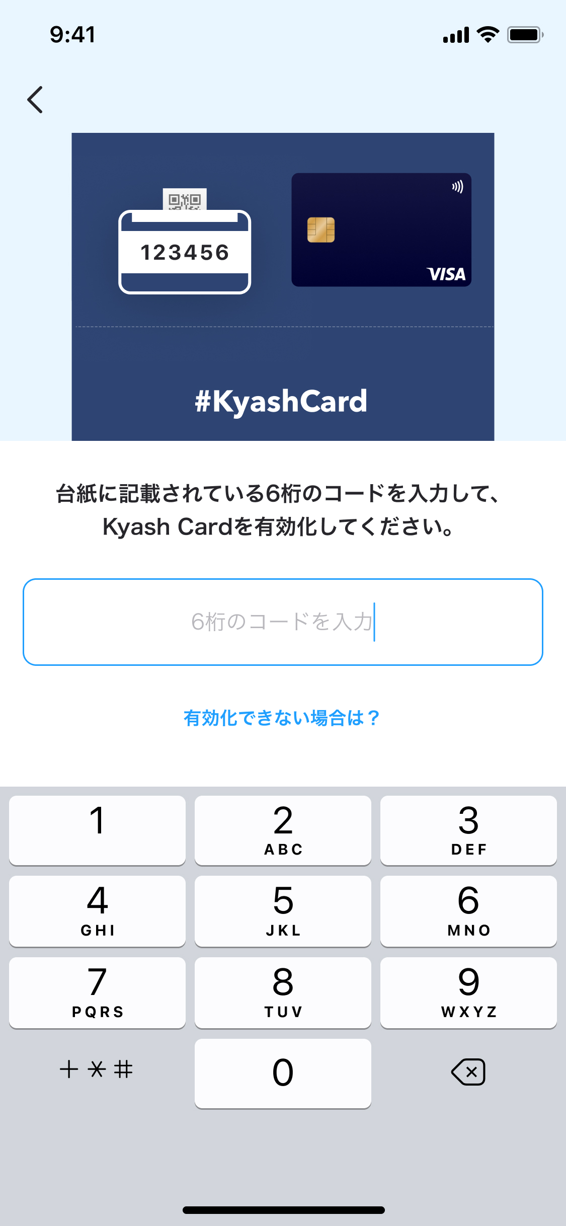 Kyash Cardがお手元に届いた後、カードの有効化をお願いします。