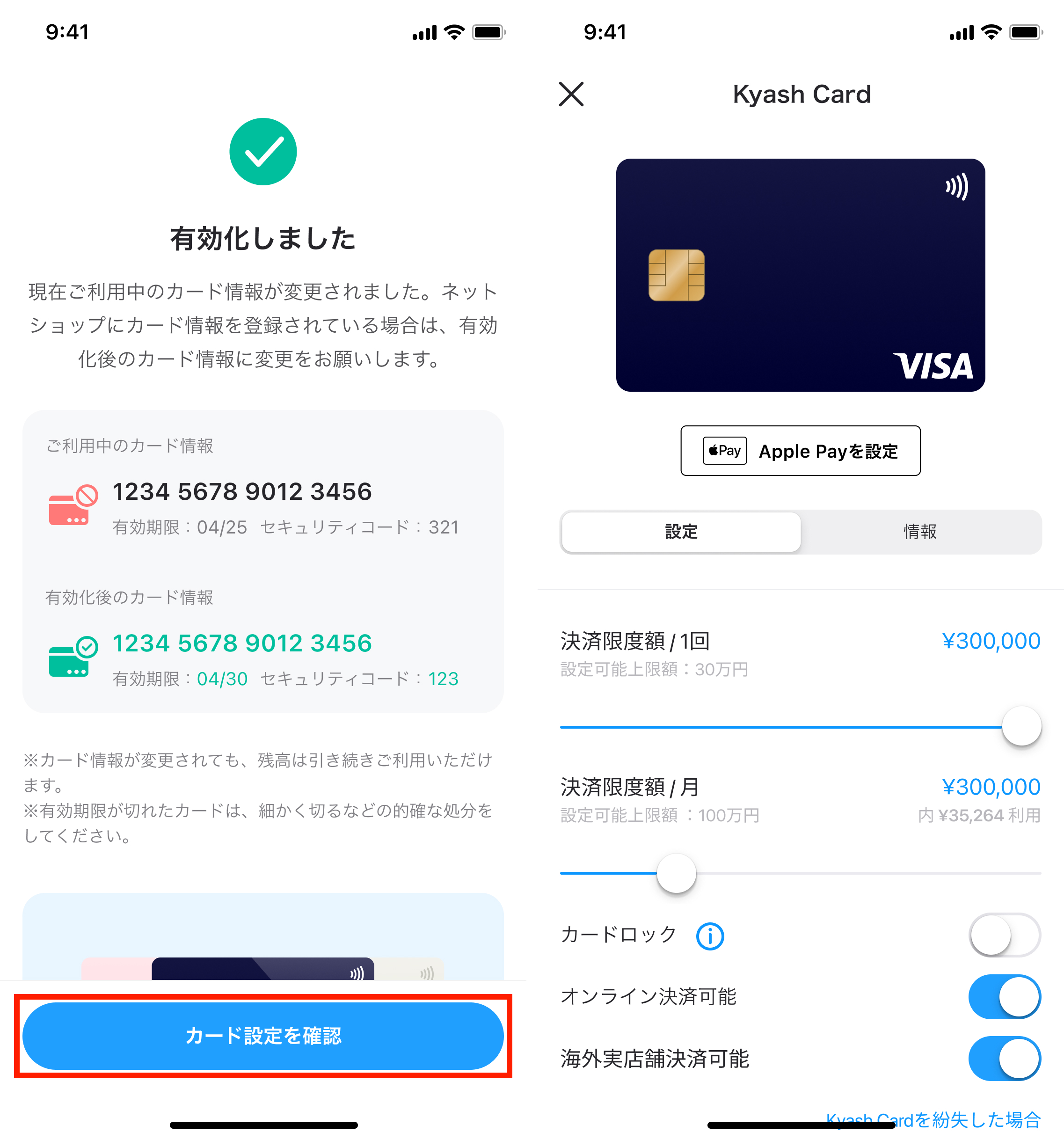 3. 下記画面が表示されましたらカードの有効化は完了です