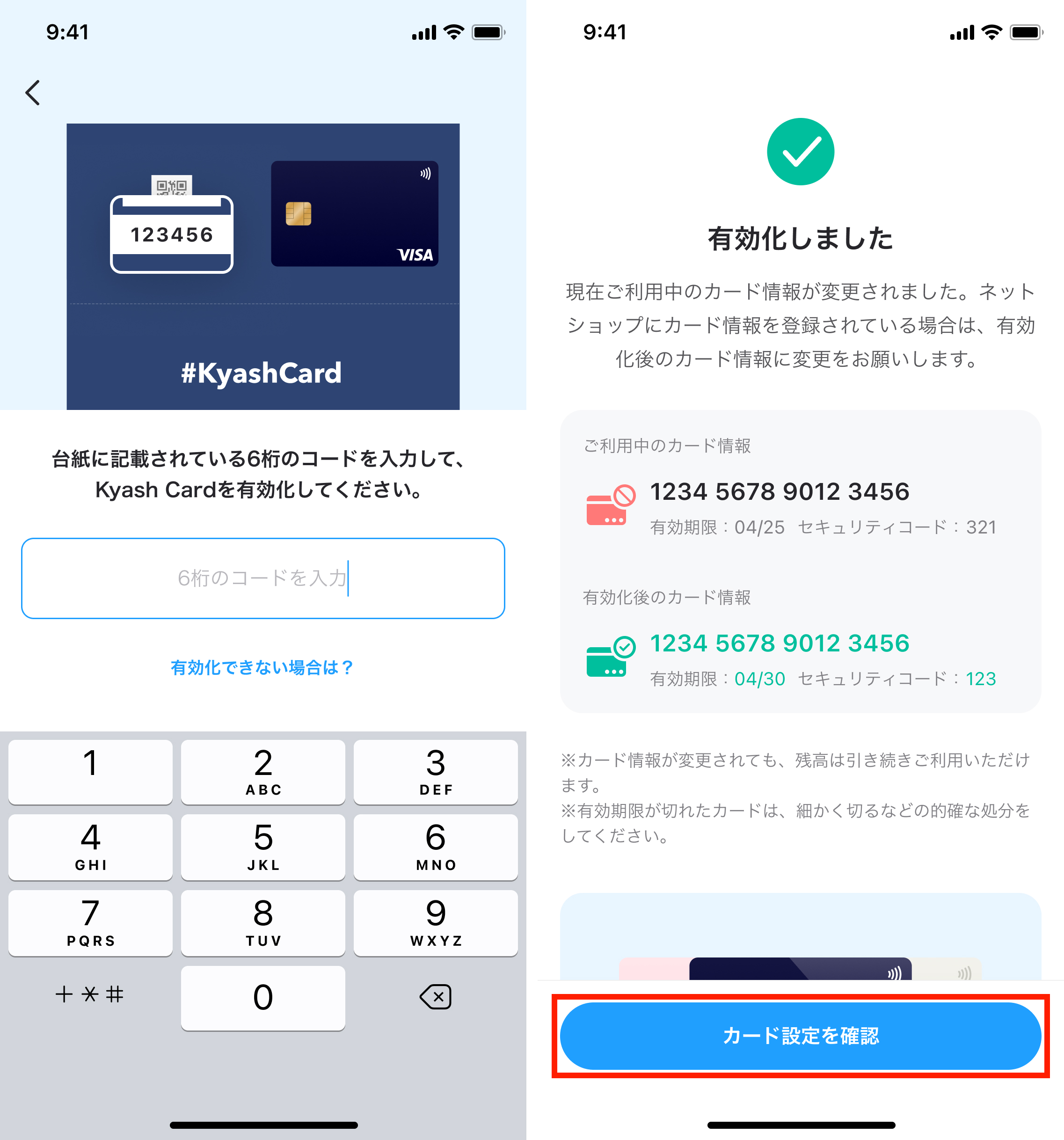 お手元にカードが到着しましたら、Kyashアプリ内にて有効化のお手続きを行ってください。